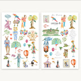 Inside a whimsical illustrated envelope, you’ll discover two A5 sticker sheets — filled with watercolor characters, playful animals, and dream-like details: hot-air balloons, ferris wheels, peacocks, and more.